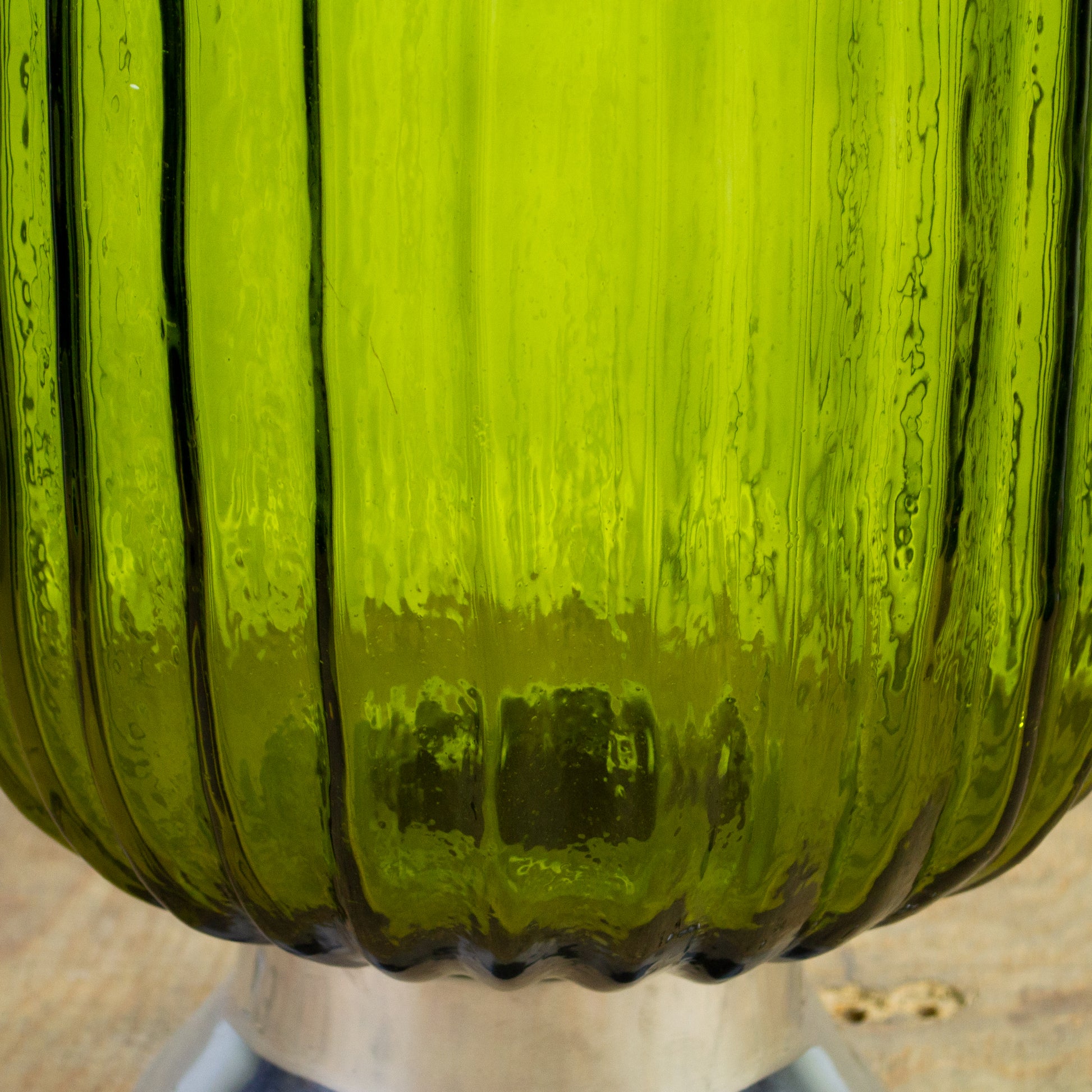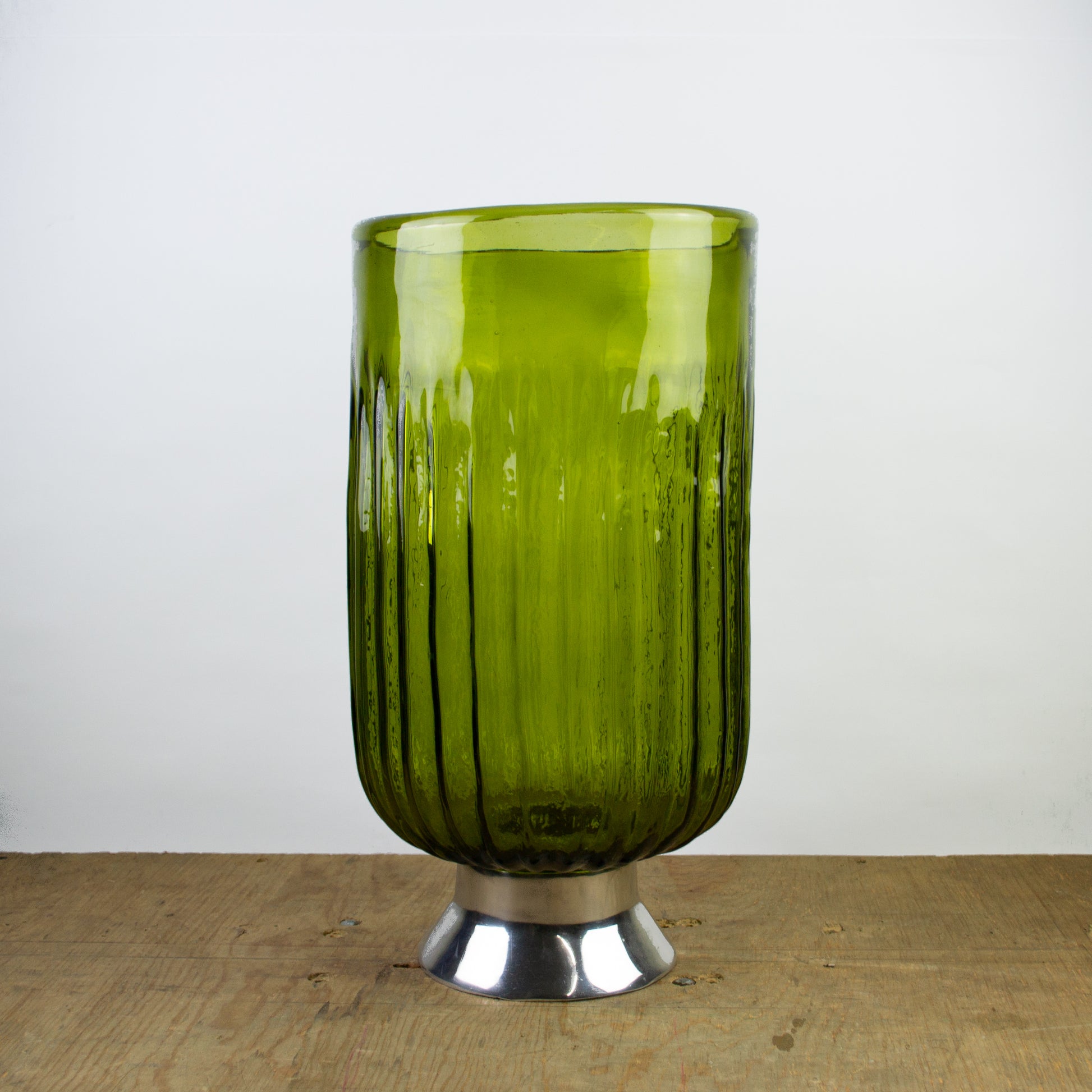 ¡Decora tu hogar con este hermoso florero verde en cristal! Esta pieza única cuenta con una base metálica que le da un toque moderno y elegante. El cristal transparente permite que la luz natural se refleje en la habitación, creando un ambiente acogedor. ¡Agrega un toque de color a tu hogar con este florero verde!